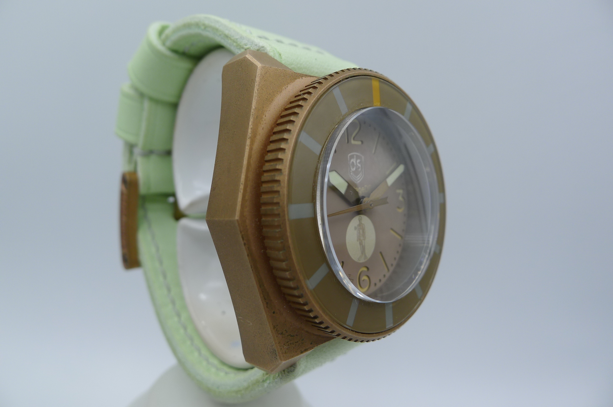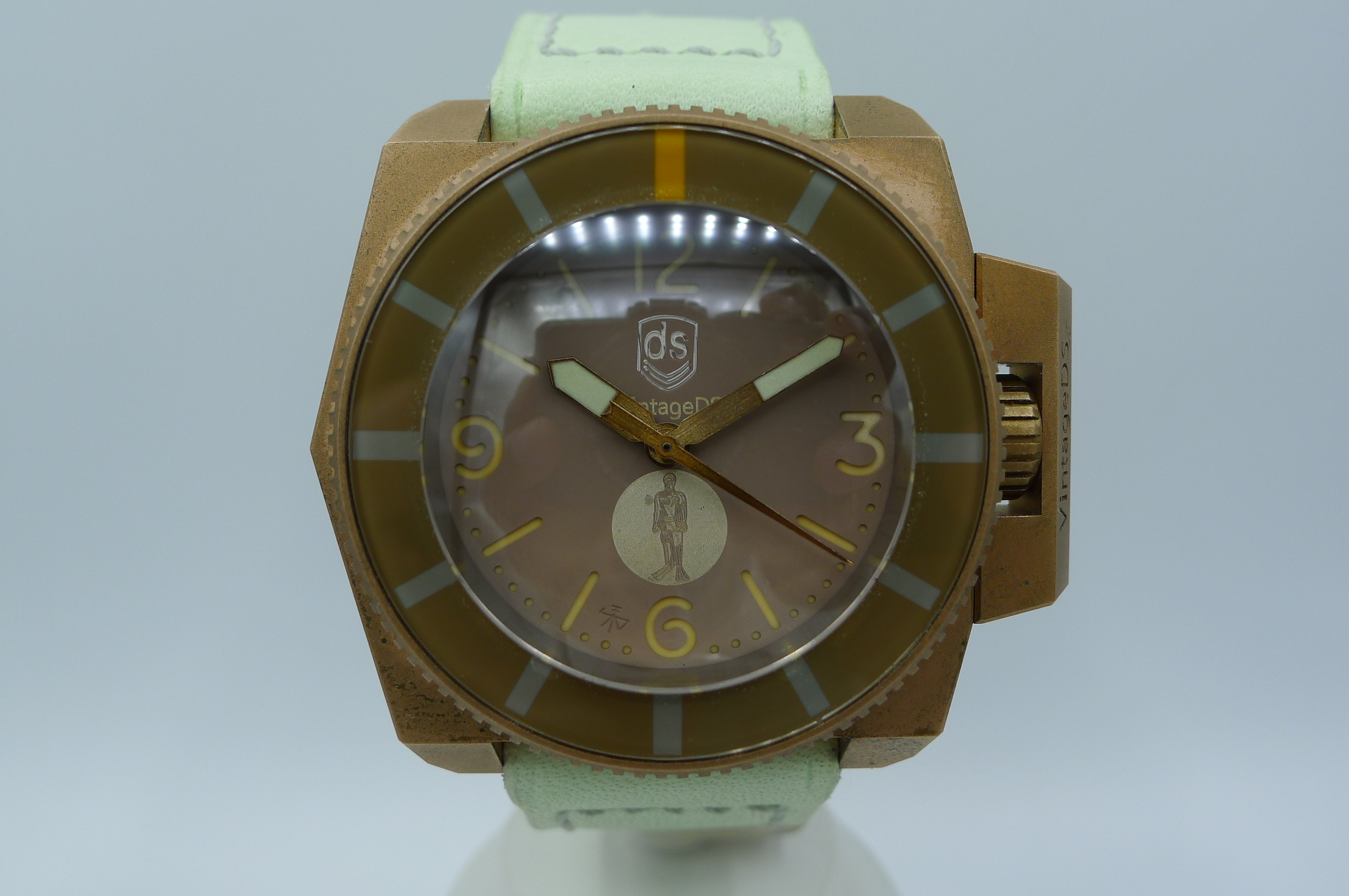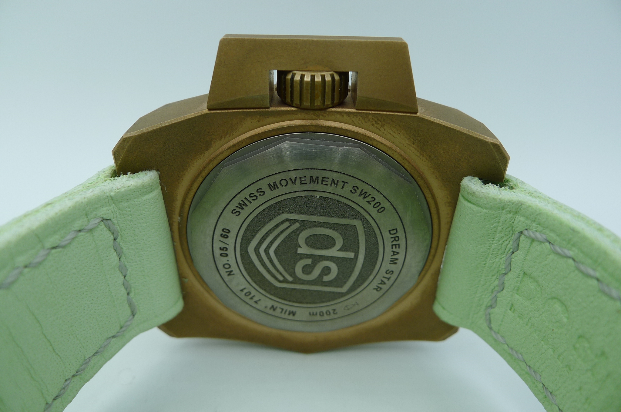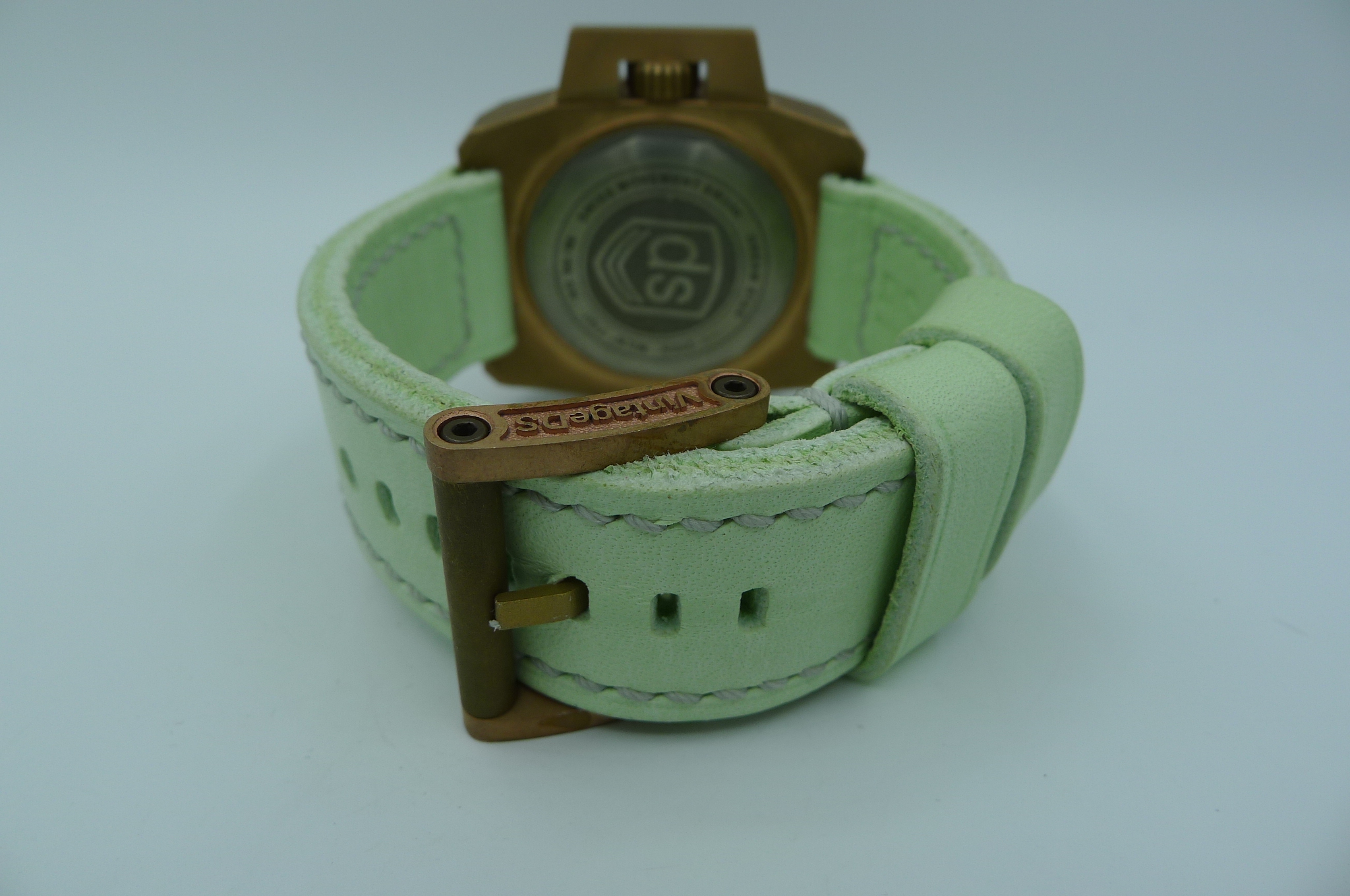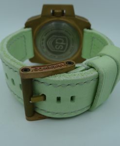 STRAP – CUSTOM DC STRAPS MINT GREEN LEATHER WITH BRONZE ROLLER TANG BUCKLE
