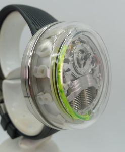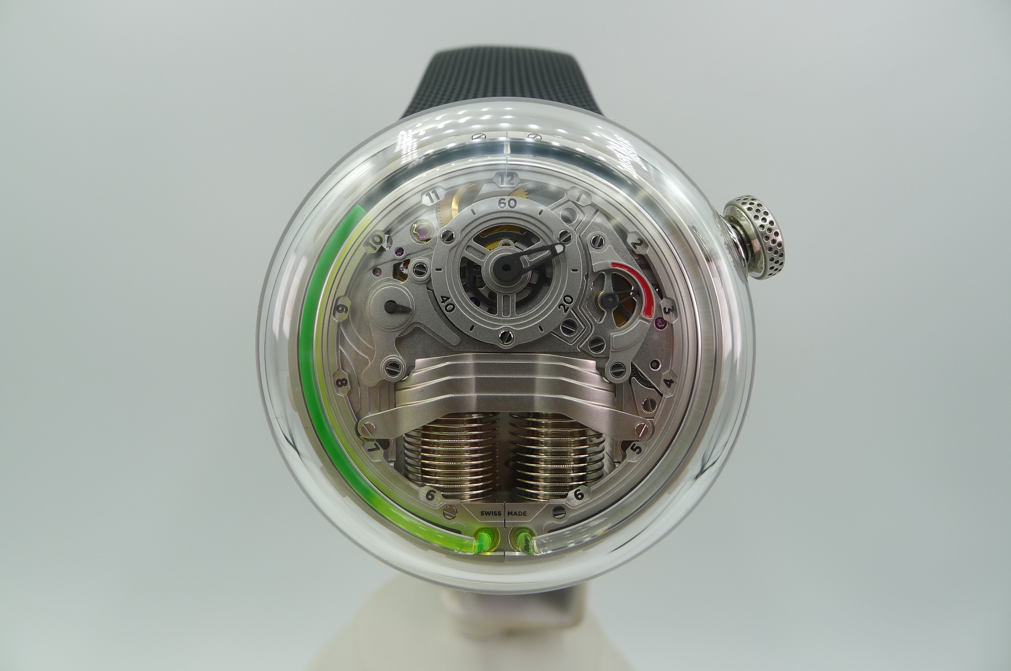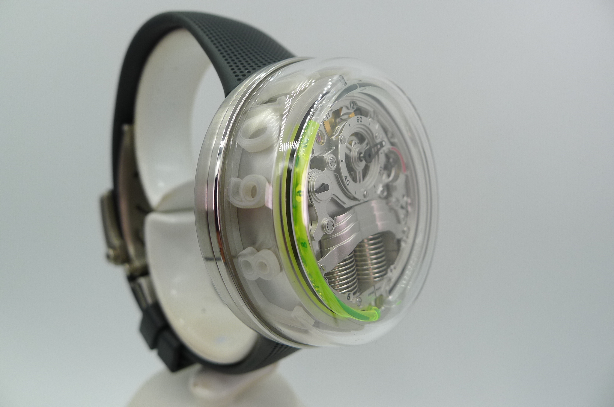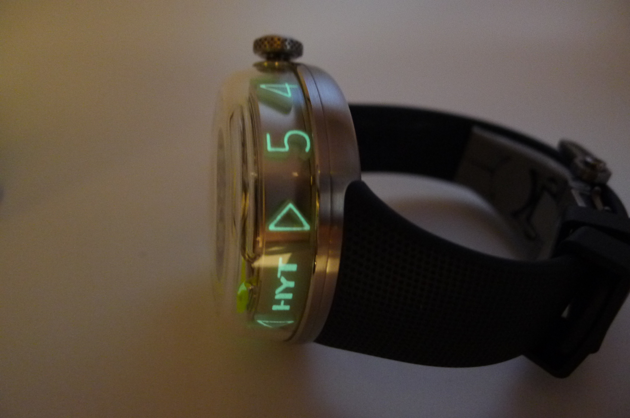 MOVEMENT – MANUAL WIND HYT CALIBER WITH FLUID RETROGRADE HOUR DISPLAY, MINUTES AT 12:00, POWER RESERVE AT 3:00 & SECONDS AT 9:00